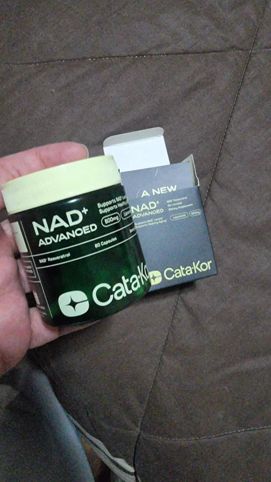 NAD+ is an all-in-one anti-aging NAD+ supplement designed to support skin aging, enhance energy levels, and boost focus. It contains Nicotinamide Riboside, Resveratrol, and Quercetin, delivered through advanced liposomal technology for superior absorption.